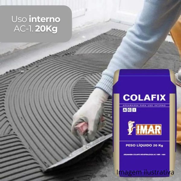 Argamassa AC-I Colafix, é uma argamassa colante tipo AC-I desenvolvida para assentamento de placas cerâmicas em áreas internas. Apresentando ótimo desempenho, garante excelente aderência, resistência mecânica e durabilidade da aplicação, além de ótimo rendimento. Asentamento de placas cerâmicas de até 3600 cm² de área (por exemplo 60 x 60 cm) com absorção de água maior ou igual à 3%, em pisos e paredes, exclusivamente em áreas internas.