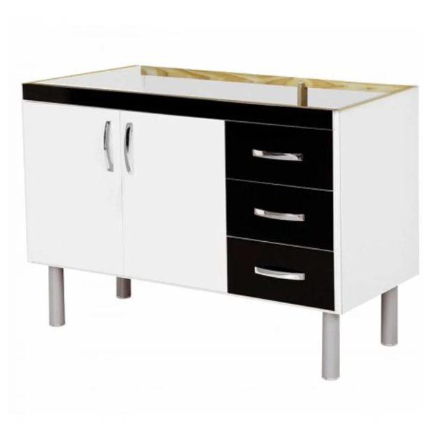 Gabinete cozinha Tóquio 116,2 cm branco com preto (Sem Pia)